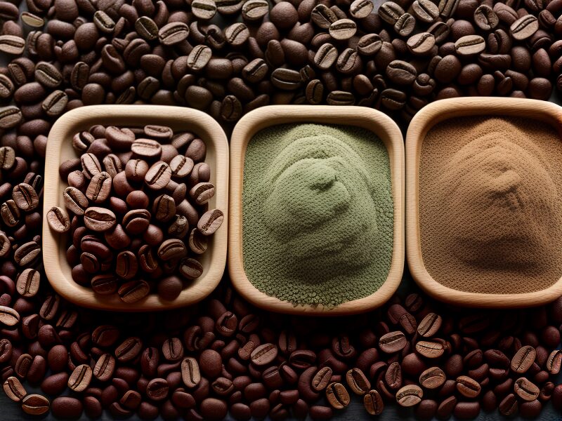 Unverarbeitete Kaffeebohnen, reich an Chlorogensäure und Antioxidantien, die zahlreiche gesundheitliche Vorteile bieten.